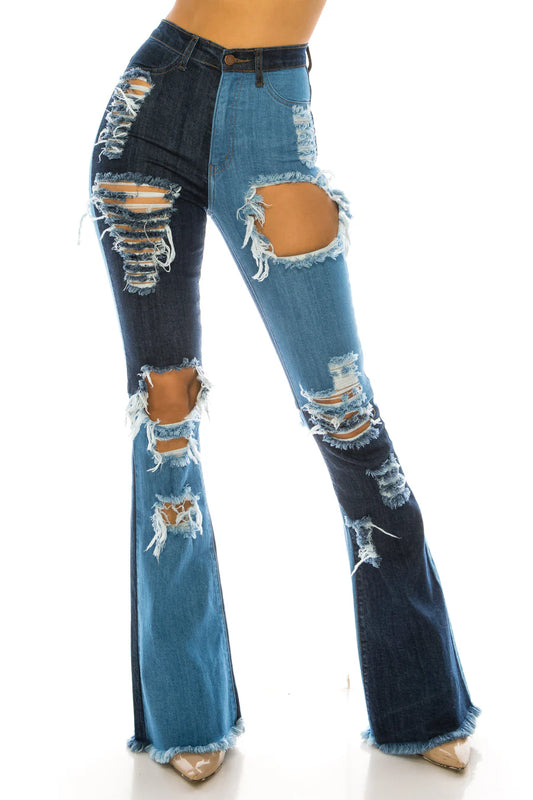 WOMEN'S HIGH WAISTED DISTRESSED FLARE JEANS